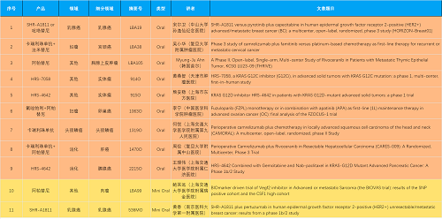 15款创新药包括10款已上市产品:注射用瑞康曲妥珠单抗(艾维达®,研发代号:SHR-A1811)、注射用卡瑞利珠单抗(艾瑞卡®)、苹果酸法米替尼胶囊(艾比特®)、甲磺酸阿帕替尼片(艾坦®)、马来酸吡咯替尼片(艾瑞妮®)、阿得贝利单抗注射液(艾瑞利®)、羟乙磺酸达尔西利片(艾瑞康®)、氟唑帕利胶囊(艾瑞颐®)、瑞维鲁胺片(艾瑞恩®)、海曲泊帕乙醇胺片(恒曲®),以及5款未上市产品,包括KRASG12C抑制剂HRS-7058、KRASG12D抑制剂HRS-4642、选择性的AR-PROTAC(雄激素受体-蛋白降解靶向嵌合体)小分子HRS-5041、抗PD-L1/TGF-βRII双抗瑞拉芙普-α注射液(SHR-1701)、Trop-2 ADC SHR-A1921。2类新药盐酸伊立替康脂质体注射液(II)(越优力®)及国内首仿药昂丹司琼口溶膜(艾其速®)各有1项研究入选。本文特对研究成果做了梳理,带领各位读者领略918博天堂医药创新之光。